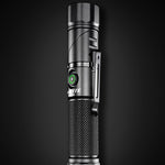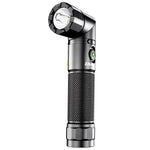 The FR-1200 Dual Powered Right Angle Flashlight: a high quality lighting solution designed for versatility and durability. With a powerful 1200 lumen white LED, 3 light modes, and a 90 degree rotating head, it provides reliable illumination for any task. The hard anodized cast matt aluminum body, pocket clip, and magnetic base ensure convenience and hands-free operation. It is IP65 dust and water resistant, as well as impact resistant up to 2 metres. The built in rubberised USB C charging port, battery level indicator, and circuit protection add further convenience and safety. It can be charged quickly in 2.5 hours and also supports 2 x CR123A lithium batteries (not included).
