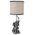 Widdop HE1670 Antique Silver Sitting Elephant Sculpture Vintage Table Lamp with Linen Drum Lampshade - 47cm Height