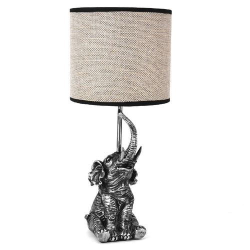 Widdop HE1670 Antique Silver Sitting Elephant Sculpture Vintage Table Lamp with Linen Drum Lampshade - 47cm Height  A stunning vintage antique silver resin high definition sitting elephant table lamp with linen drum lampshade. A classic retro design that is perfect for...