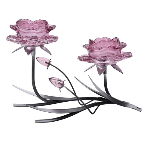 Widdop HE2518 Pink Glass Rose with Black And Silver Metal Base Twin Tea Light Candle Holder - 22cm Width   A unique and stylish two tone black and silver metal stem...
