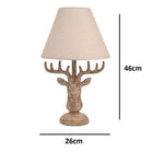 Widdop HE2551 Wood Effect Rustic Stag Head Sculpture Vintage Table Lamp with Linen Shade - 46cm Height